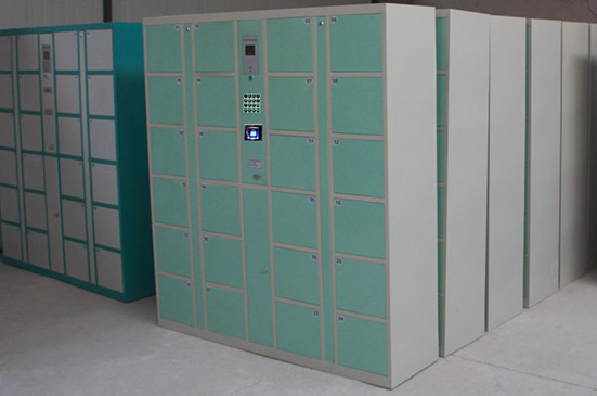通过联网由服务器对每一个柜的信息进行数据记载、查阅。如柜子里是否有物品,柜子的开启记录等。当使用者来取走储存的物品后,系统会自动将该柜门进行对应清除,并给出空闲标志。简化使用者的操作规程。