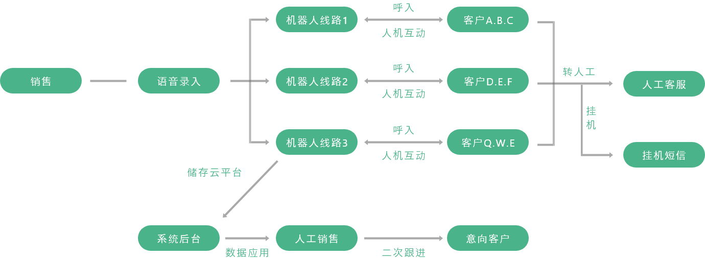 为客户提供机器人营销外呼的能力,通过人机协同,提升 呼叫中心工作效率